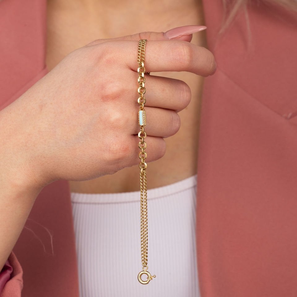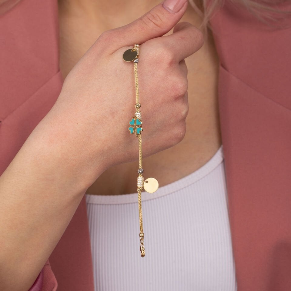 Turkuaz Mine Taş Detay Altın Bileklik