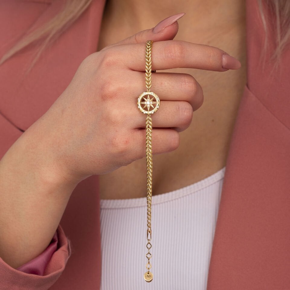 Taş Detay Pusula Altın Bileklik