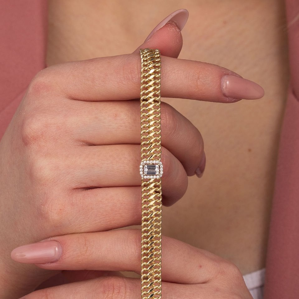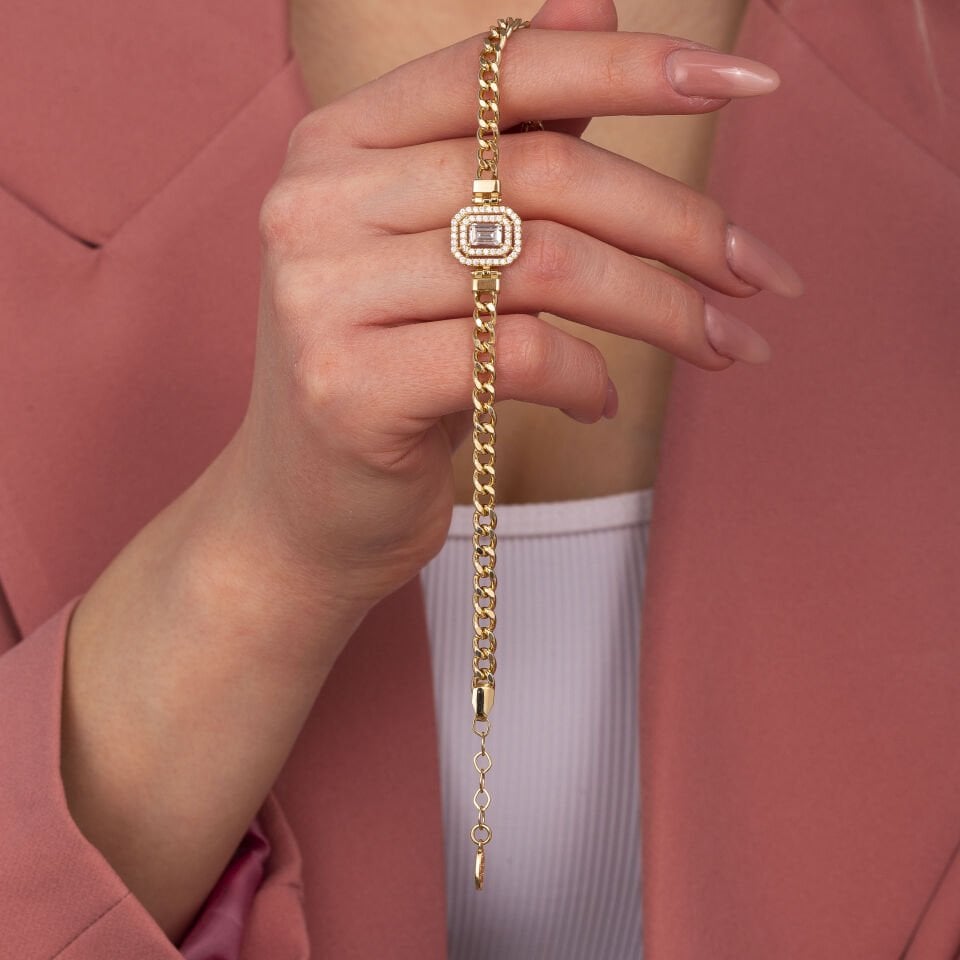 Baget Taşlı Zincir Altın Bileklik