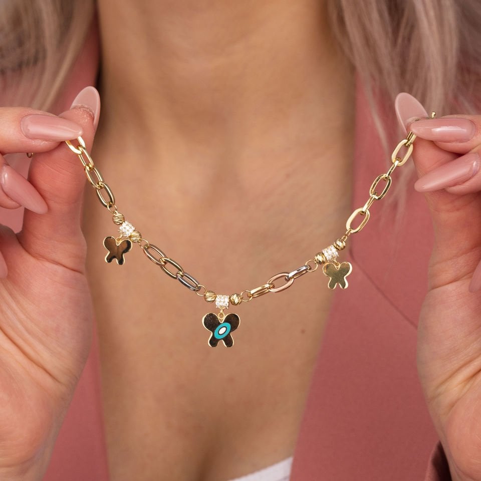 Mineli Kelelebek Figür Altın Bileklik